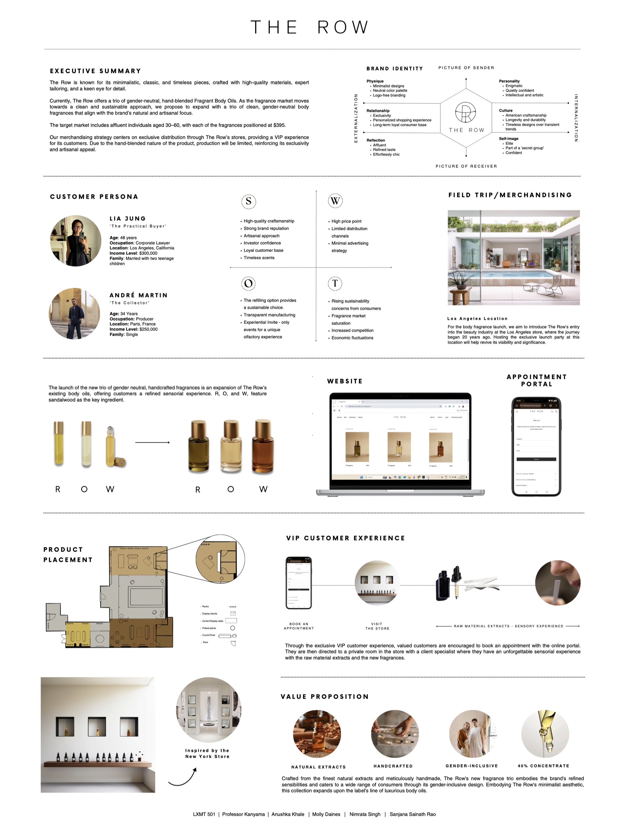 The Row has become a reference point for quiet luxury—its power sits almost entirely in what it refuses to do. This project developed a brand extension into fragrance, including packaging, store concept, and retail narrative.